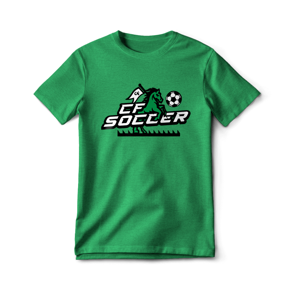 Support your favorite team with this CF Soccer Colt Skew Tee! The bold Colt graphic represents Clear Fork's colors, making it a must-have for game days. Show off your team pride with this statement piece.